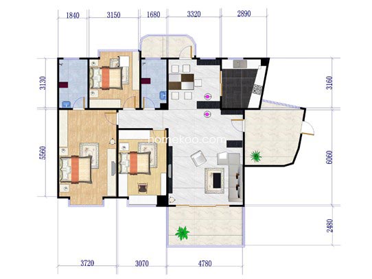 嘉粤百合雅居三房单位户型3室2厅1卫