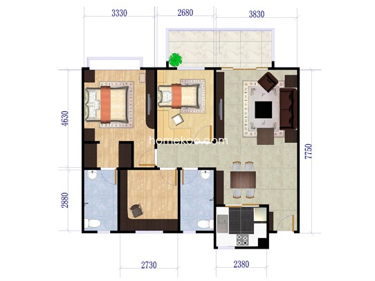 3室2厅2卫 99㎡
